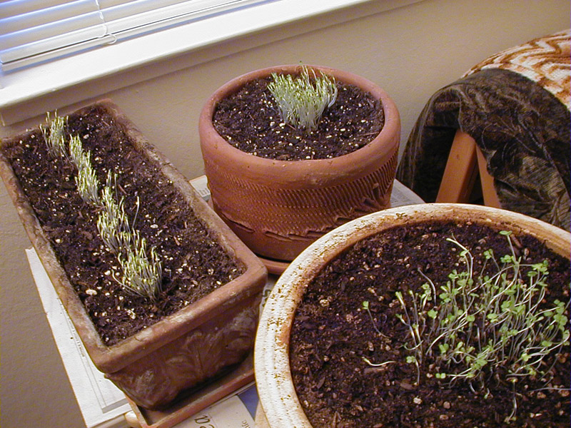 The big pot is doing really well, as you can tell and the picture on the right is the row of Buttercrunch lettuce!  All three pots are thriving!!