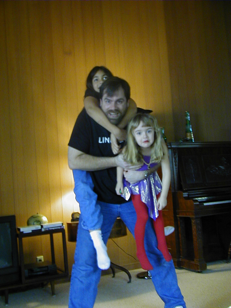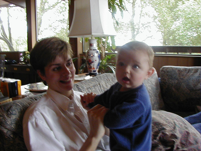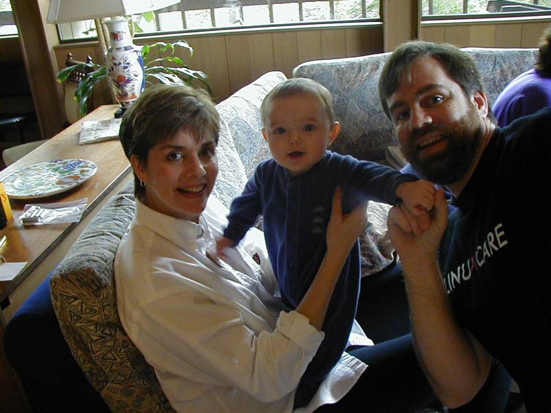 Then, you have to realize that the child looks at someone like me and says, "Okay, I get it-- you're the only one in this picture that I won't look like!!" ;>)    Mom, Brian's sister (as if she needed an introduction) is holding Rob and, then, of course, someone involved in that operating system group where they hand out t-shirts once-a-month is on the right side of the picture.  Hmmm, don't know his name . . . I'm sure it'll come to me . . . eventually!
