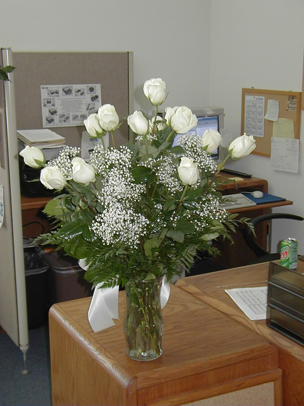From me for Brian we have . . . one dozen (actually a baker's dozen) white long-stemmed roses delivered to his office.  I haven't done that since I went to Colombia on business around Valentine's Day in 1997.  As a result, I figured he was due to receive more-- no, the other arrangement that I had sent has long since disappeared.