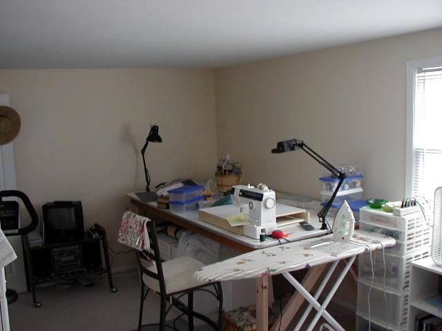 Brian has rebuilt the legs of the sewing table so that it is much more sturdy than the first rendering.  This week, however, is the first chance that I'll get to use it-- we're finally finished unpacking!!
