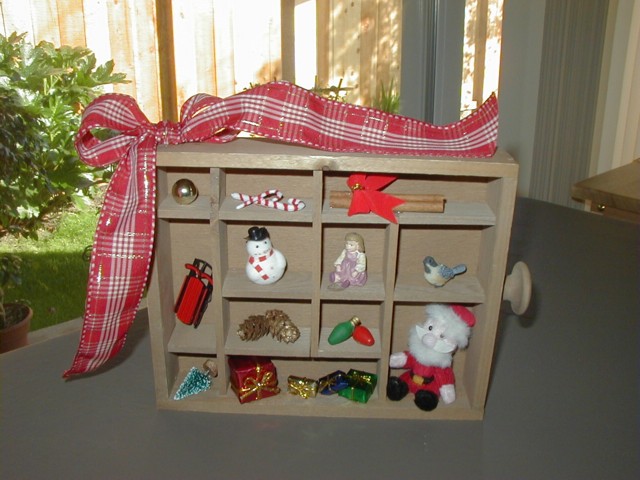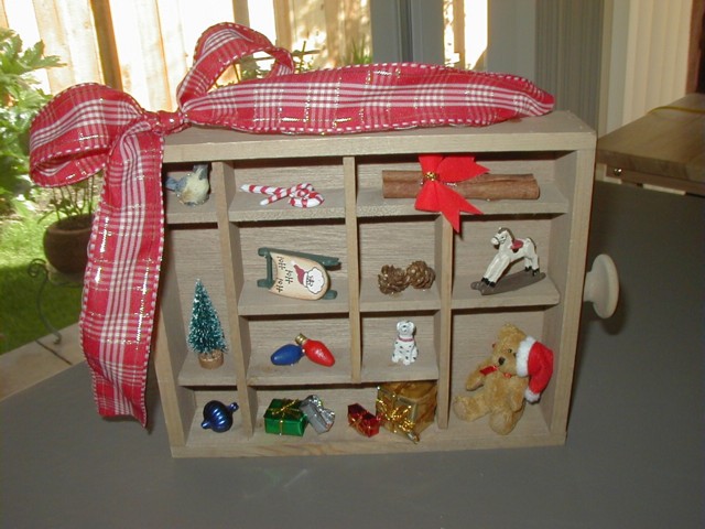The four pictures above are shadowboxes that I made as Christmas gifts for my sisters, my cousin, and a friend.  They were held aside as "Do not open 'til Christmas" presents so I couldn't show you the pictures before today.  There were five other "Do not open 'til Christmas" that I didn't get a picture of because I didn't have them assembled before the holiday-- they had to be "assembled" at the receiver's end of the world so we'll have to wait and see if we get any pictures of those back, in which case I'll post them.