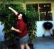 Marcia at the tomato hedge, Summer, 1998. [80k]