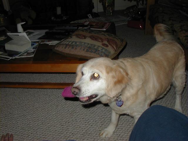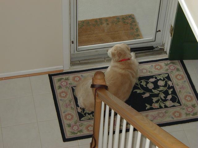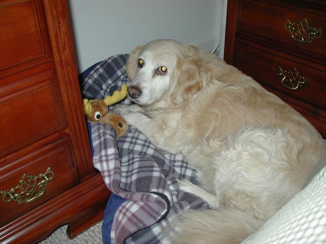 That's okay-- for the most part, she stays downstairs and sleeps during the day and then again, we'll bring her up for extended visits with us during the day sometimes, too. The problem is when its early evening and, as you know, dogs are extreme creatures of habit. She is used to snuggles, cuddles, and treats during the early hours of the evening so if she's upstairs, she expects these things to still happen, going up and down the stairs to make them happen. Nope, that is not going to be happening with her vision problems!!