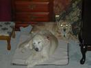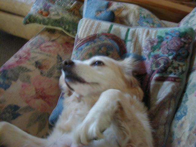 So let me tell you what's been happening to me since I last talked with you: Mommy and Daddy moved!!!! They drove their cars (and a strange one that didn't smell like me or them) for six days and we stayed in weird places every night that didn't smell like us and then we finally got to a new place that didn't smell like us either and they took all of the stuff out of the cars so it started to smell like us. This new place has a mountain in the middle of it!!! At least it looks like a mountain-- it has carpet on it though and Mommy and Daddy go up there every night to go to sleep and sometimes during the day and evening to play on their computers. I can't make it up the mountain though cuz it is very steep and hard to climb-- I think I'm going to slip. Then, this biigggggg truck pulled up and all of these nice people helped Mommy and Daddy put the stuff in the house but then there was no place left for me to just lay around cuz there were boxes every where!!!