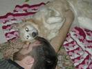 Today, I get to meet my GrandMartha and Bob and Uncle Mike and Aunt Barbie and my cousins: Alexandra and Robbie. I'm very excited!! I hear that Alex and Robbie will like having me in the family cuz I'm furrier than anyone else-- Daddy gave me another bath yesterday so I'm soft enough for little Robbie to play with, too!!