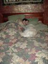 Here I am trying to warm my Daddy's feet-- he's got really cold feet!! |
